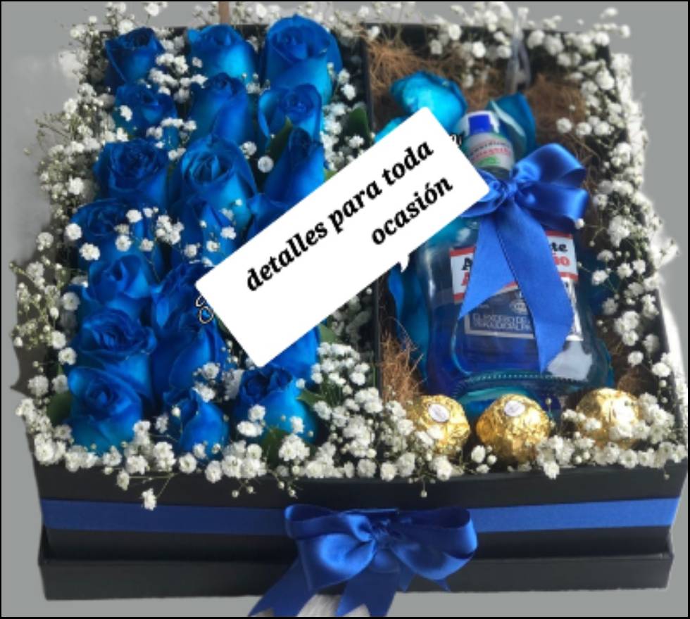 Caja de rosas, caja de flores, rosas de color azul, rosas de colores, rosas con licor, rosas, flores, regalos a domicilio en medellín, detalles a domicilio en medellín