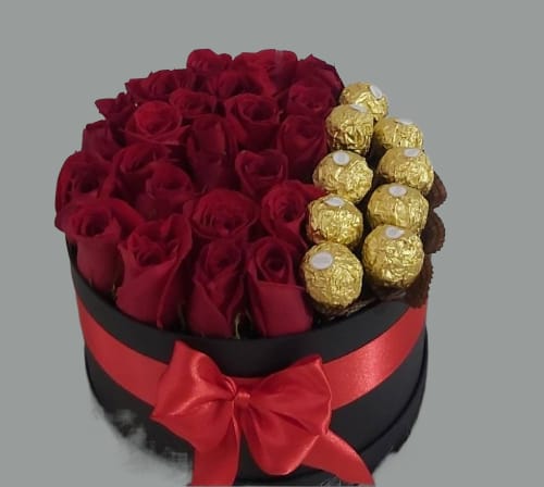 Si deseas enviar flores a domicilio en Medellín o sorprender con regalos a domicilio en Medellín, esta caja de rosas con chocolates es una elección perfecta para cualquier ocasión.