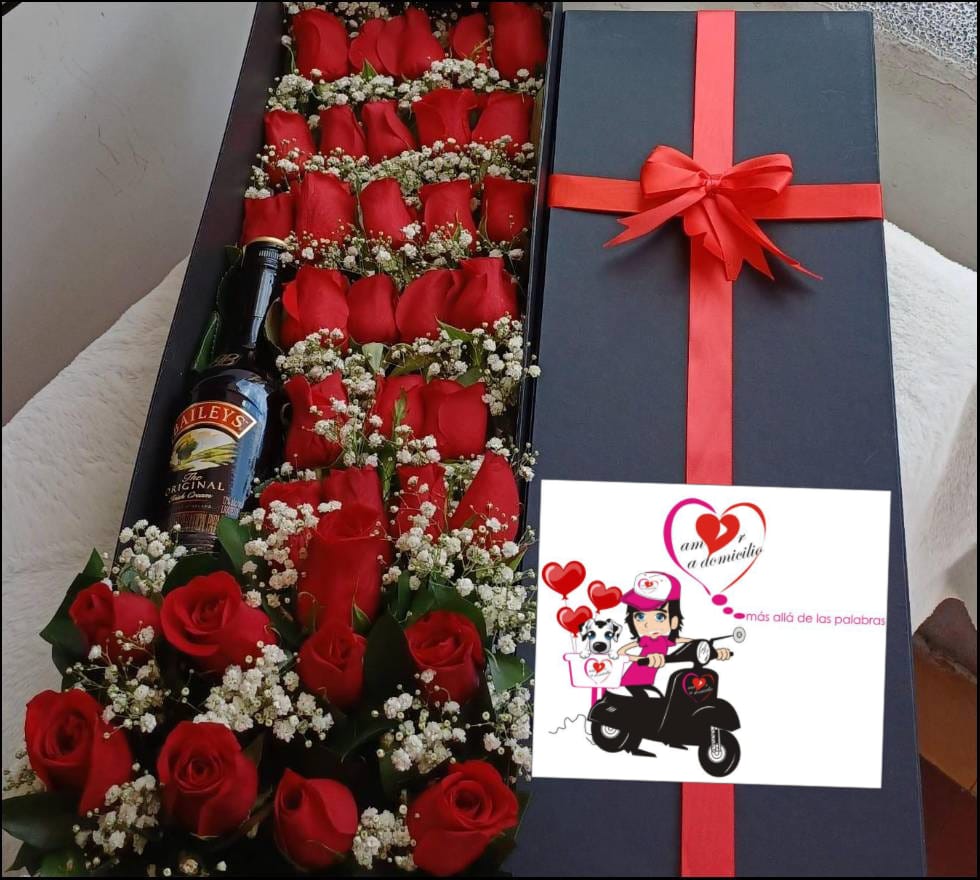 La caja de rosas, cuidadosamente seleccionada, simboliza un amor eterno, mientras que la media botella de Baileys añade un toque de lujo y sofisticación. Juntos, forman el regalo perfecto entre los detalles Día de la Madre en Medellín, creando una experiencia memorable llena de cariño y buen gusto.