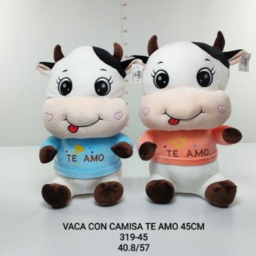 Este peluche de vaca de 45 cm es increíblemente tierno y especial. Con su cuerpo suave y esponjoso, el peluche tiene un diseño encantador con manchas blancas y negras, características típicas de una vaca, lo que lo hace muy realista y adorable. La vaca lleva puesta una camiseta con la frase "Te Amo", un detalle que lo convierte en un regalo perfecto para expresar cariño de una forma tierna y significativa.