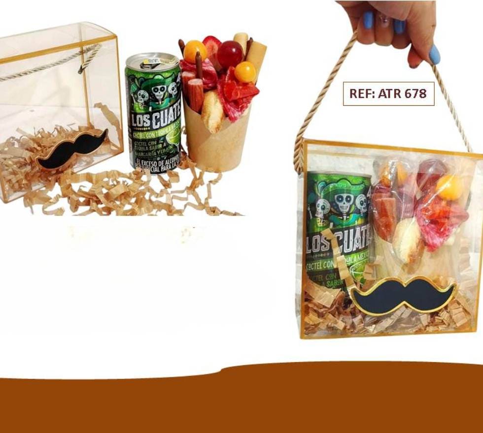 Celebra a papá con un regalo único y lleno de sabor. Esta elegante caja de acetato decorada con temática especial es el detalle ideal para sorprenderlo en su día. Incluye un refrescante cóctel de tequila mexicano, una selección gourmet de carnes maduradas y quesos, mixtura de frutas, mini croissant, palitroques, deditos de chocolate, cabano y una tarjeta personalizada para expresar tus mejores deseos.