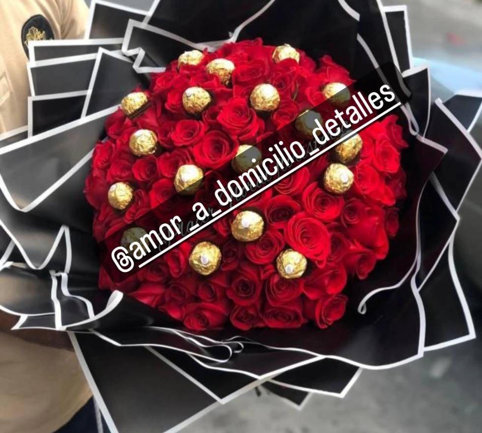 Haz tu pedido hoy, regala un bouquet de 50 rosas y chocolates Ferrero, un regalo que combina belleza, elegancia y sabor, perfecto para sorprender y encantar.