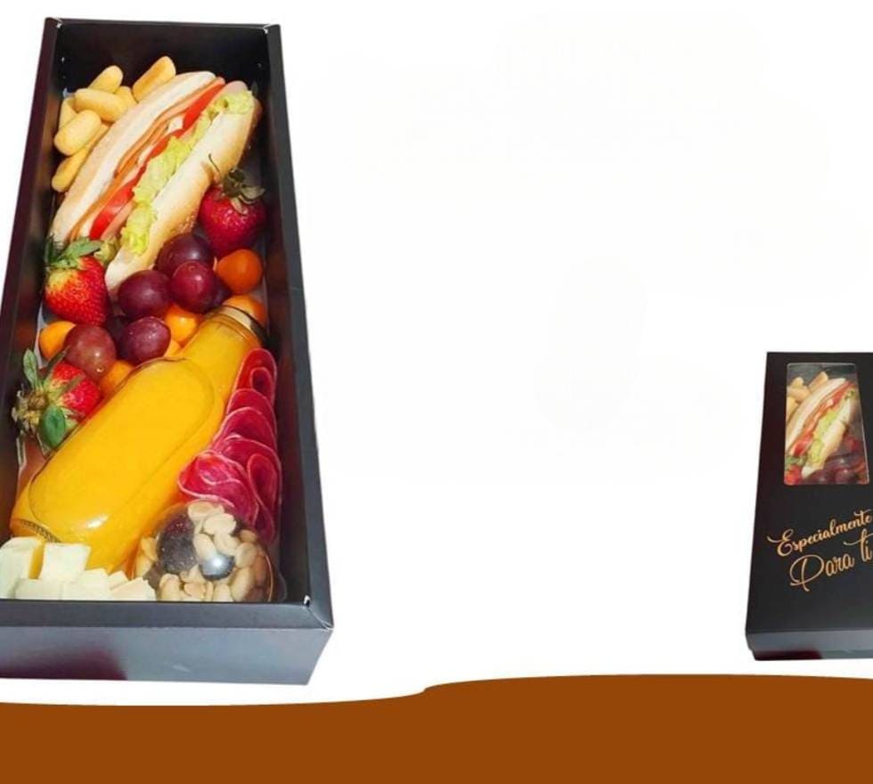 Incluye tarjeta personalizada y una exquisita selección gastronómica: achiras, sándwich de pan con jamón de cerdo, lonchita, lechuga fresca, rodajas de tomate y salsa de la casa, acompañado de jugo de naranja natural.