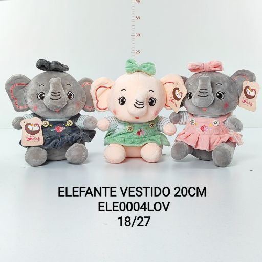 Este adorable elefantito de 22 cm es simplemente encantador. Su pelaje suave y gris le da una apariencia dulce y tierna, perfecta para abrazar. Tiene grandes orejitas de color rosa claro que sobresalen con ternura, además de sus ojos brillantes que transmiten dulzura y simpatía. El elefante lleva un hermoso vestido de color pastel, con pequeños detalles florales que le dan un toque femenino y alegre. El vestido es ligero y delicado, con un diseño que resalta su naturaleza tierna y juguetona. Su trompita, ligeramente curvada hacia arriba, le da un aire juguetón, y sus pequeñas patas están hechas para ser abrazadas, agregando más ternura al conjunto.