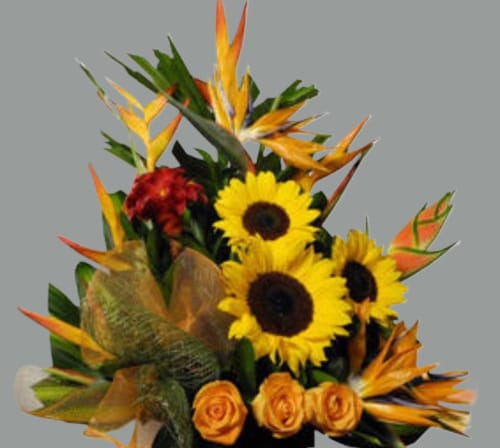 ¡Haz que tu ser querido brille con un ramo único y lleno de color! Este hermoso ramo combina la calidez y energía de los girasoles, la elegancia de las rosas y la exótica belleza de la flor del paraíso, creando una mezcla perfecta de naturaleza vibrante. Ideal para cualquier ocasión especial como cumpleaños, aniversarios o celebraciones, este ramo transmite una sensación de frescura y alegría.