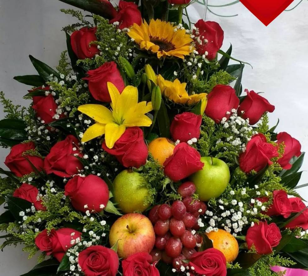 Ramos de frutas, ramos con flores y frutas, frutas y flores, frutas con rosas, frutas, ancheta con frutas, ancheta con flores y frutas, ramo de frutas