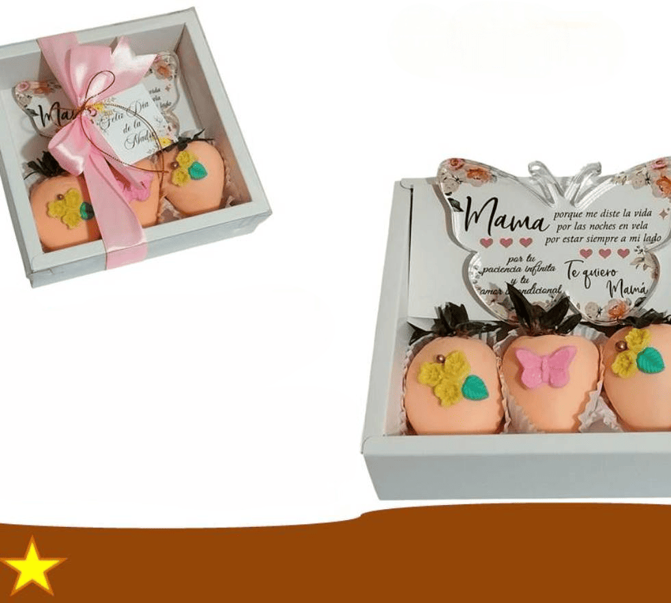 Tres Fresas Tipo A Cubiertas de Chocolate Decoradas: Dulces, frescas y deliciosas, un regalo gourmet para consentir a mamá.